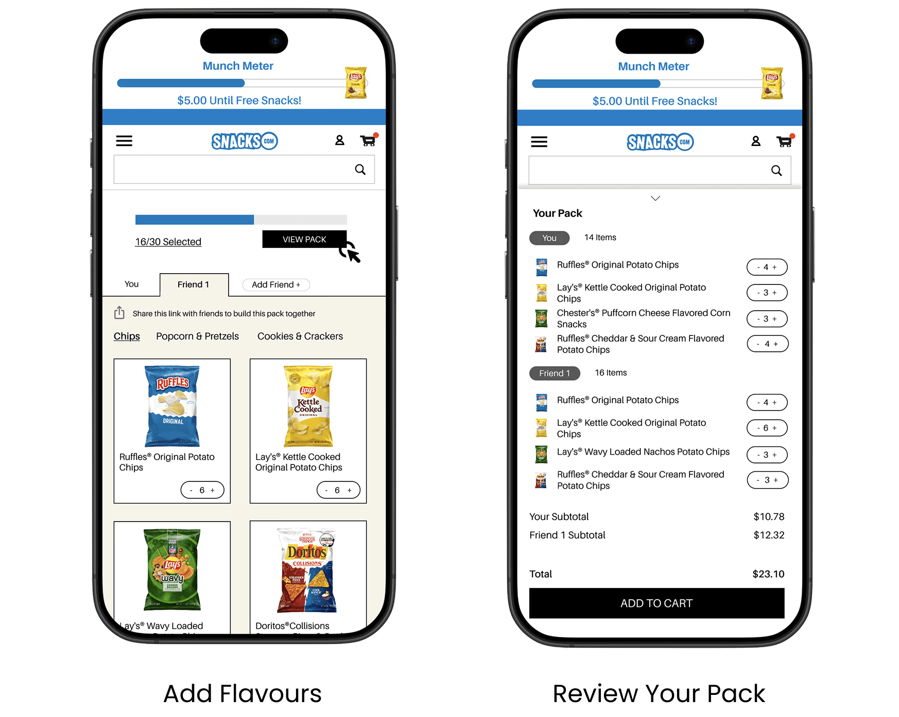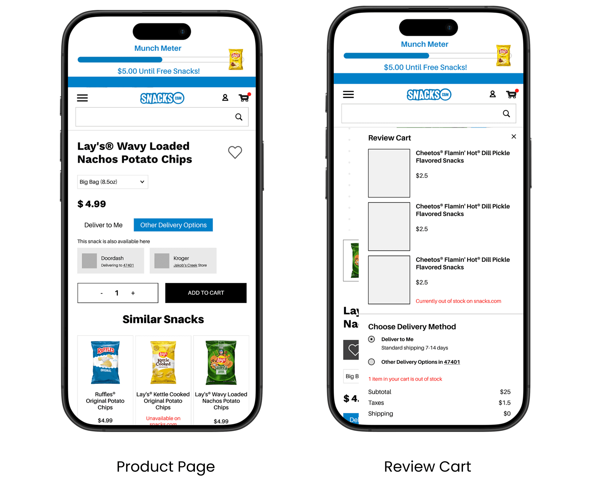 This project explores a mobile-first design of snacks.com features targeting college-age consumers by integrating social commerce, instant delivery options, and introducing collaborative shopping experiences to modernize the brand's digital presence.
