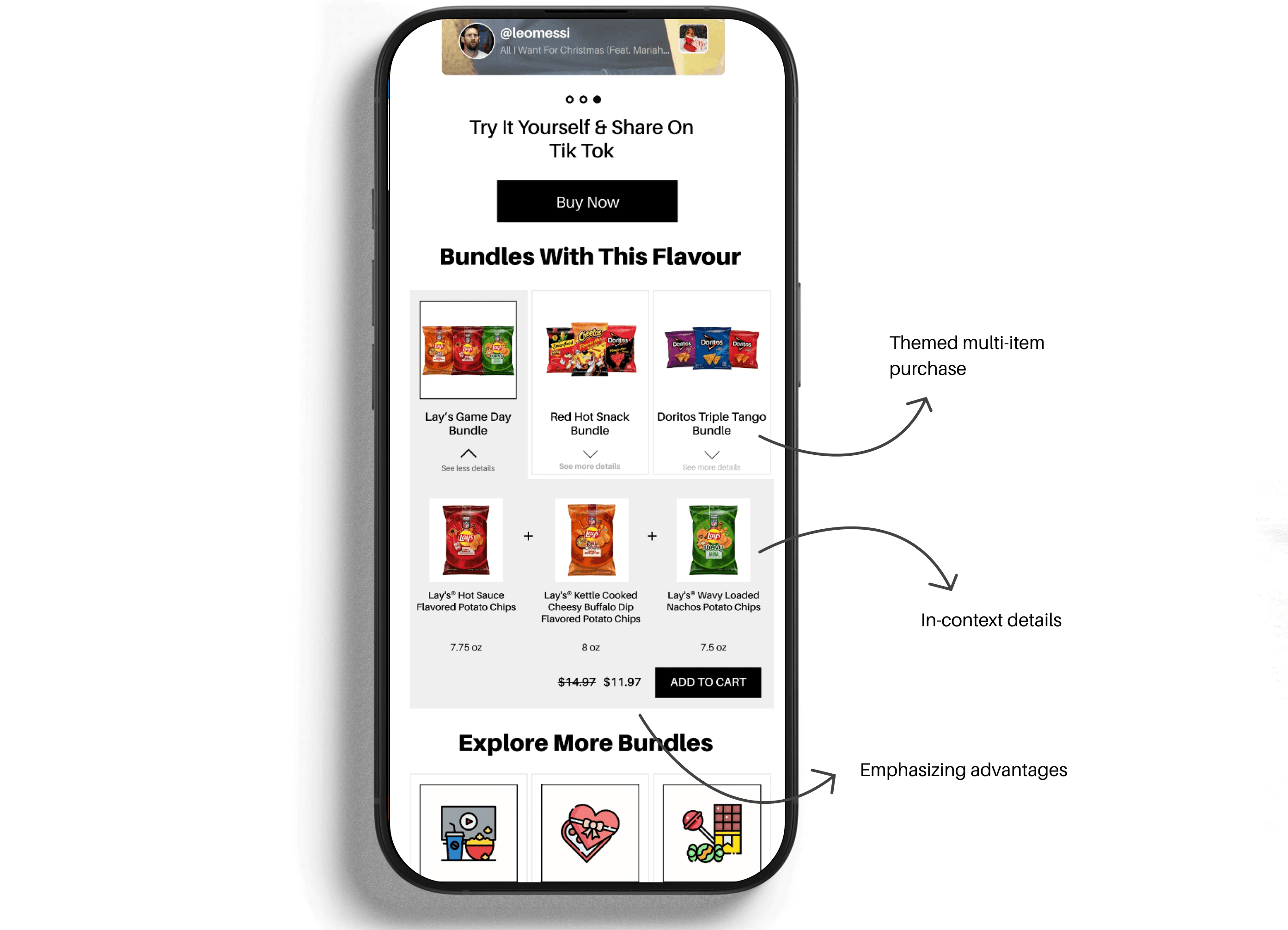 The Solution: A dedicated "Themed Bundles" page featuring rotating, seasonal "3-pack" bundles (distinct from the larger 30-pack Variety Boxes), such as a "Study and Focus" pack for December. We implemented an "In-Context" preview on standard product pages, allowing users to view bundle details and calculated savings without navigating away from the item they are currently viewing .